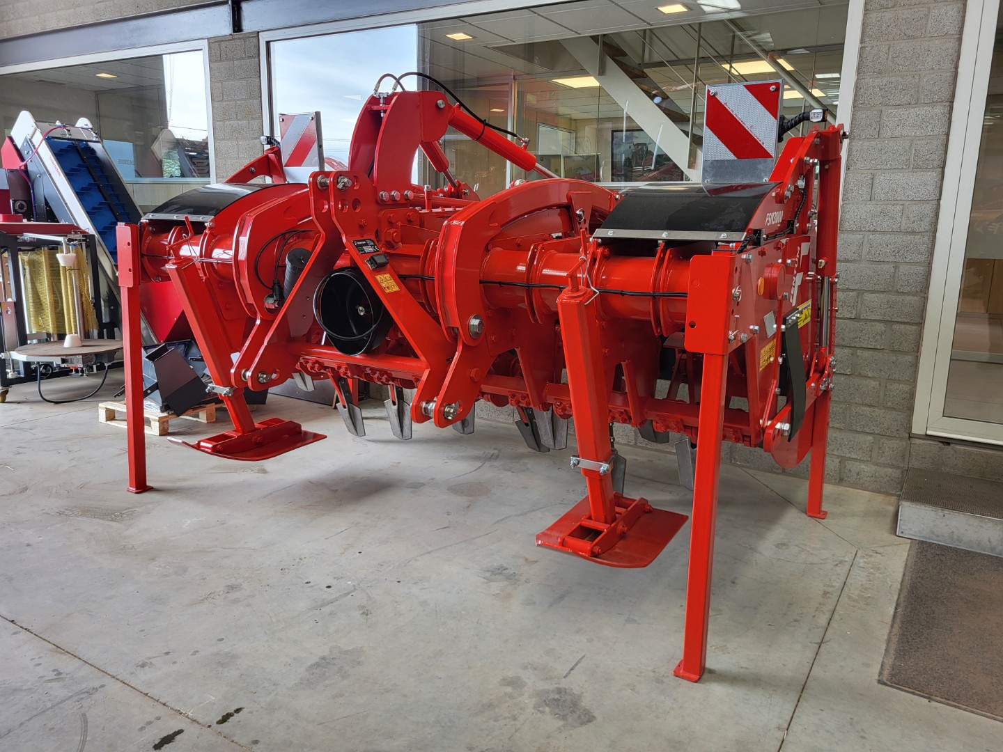 Deze machine is direct leverbaar. Er is keuze tussen een hydraulische zijhefinrichting of een hydraulische bovenover 3-puntsinrichting.