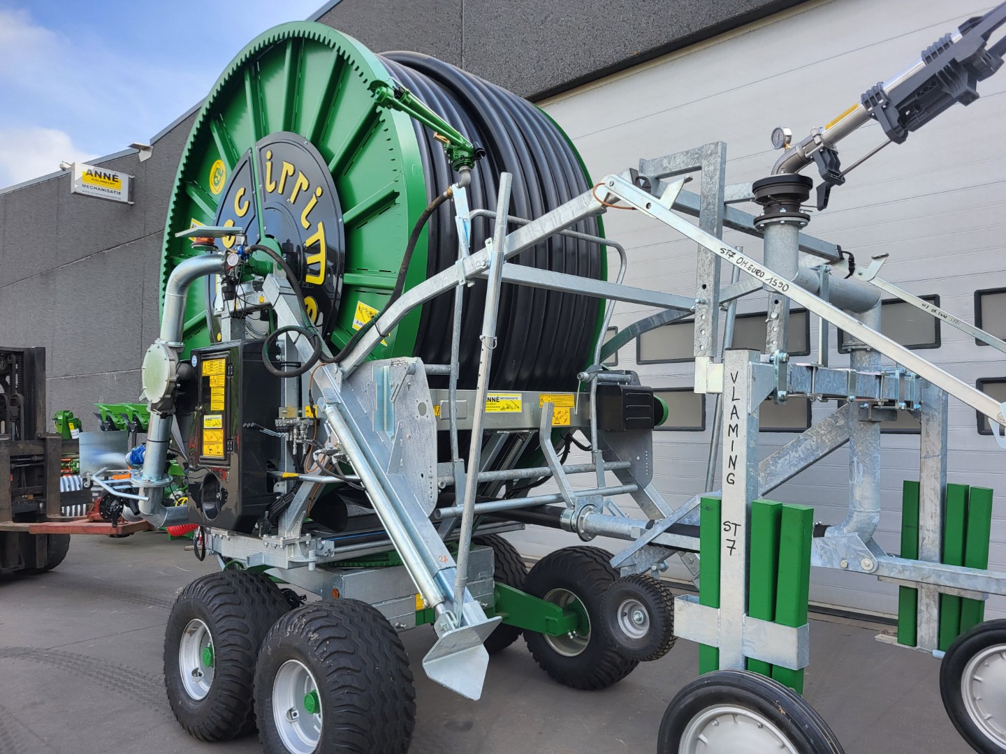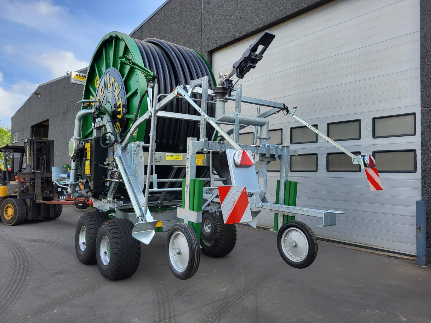 Compleet hydraulische set d.m.v. trekker voor het bedienen van de kanonwagen, draaikrans, steunpoot en stabilisatie poten